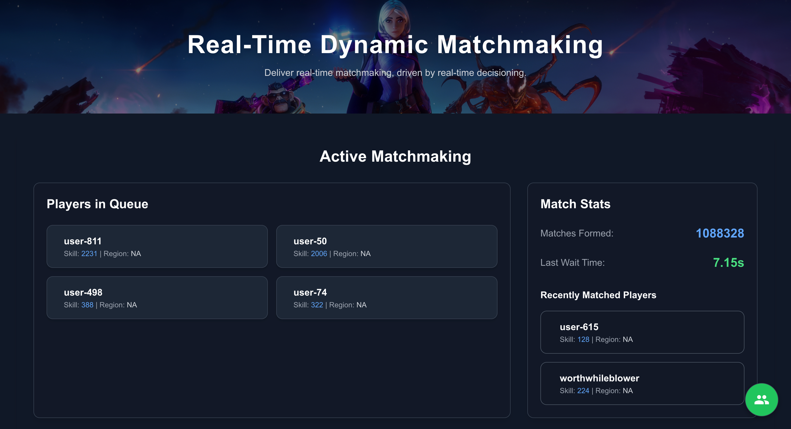 Skill Based Matchmaking Dashboard