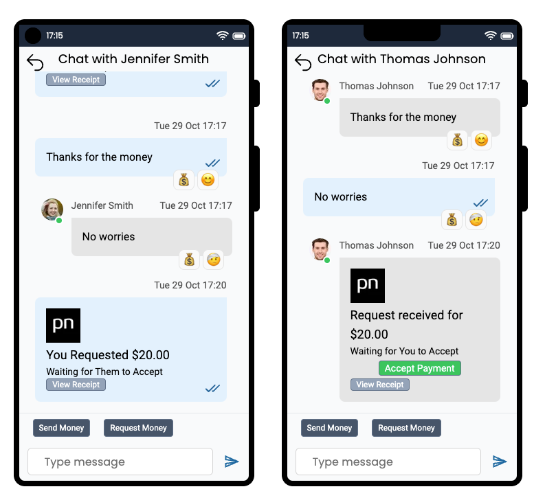Emoji / reactions can be added to both chat messages and payment notifications- Read receipts so you know when messages have been read, or payment notifications seen.